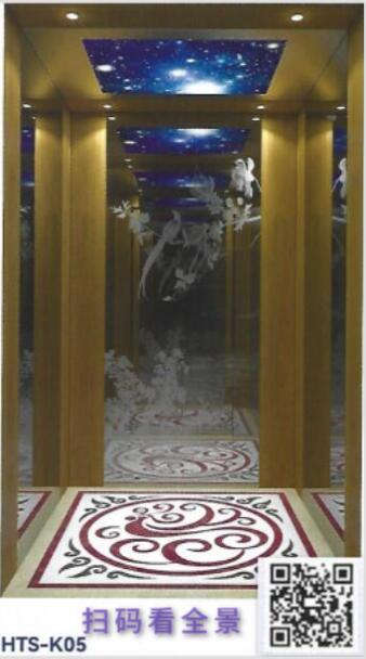 轎壁:木飾面,后壁鏡面蝕刻不銹鋼,兩側中間鏡面不銹鋼