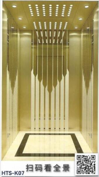轎壁:三面中間鈦金鏡面蝕刻不銹鋼,其余鈦金發紋不銹鋼